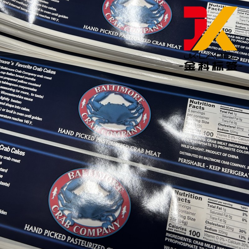 Product Name Pearlescent Film Varnished Seafood Food Packaging Adhesive Label