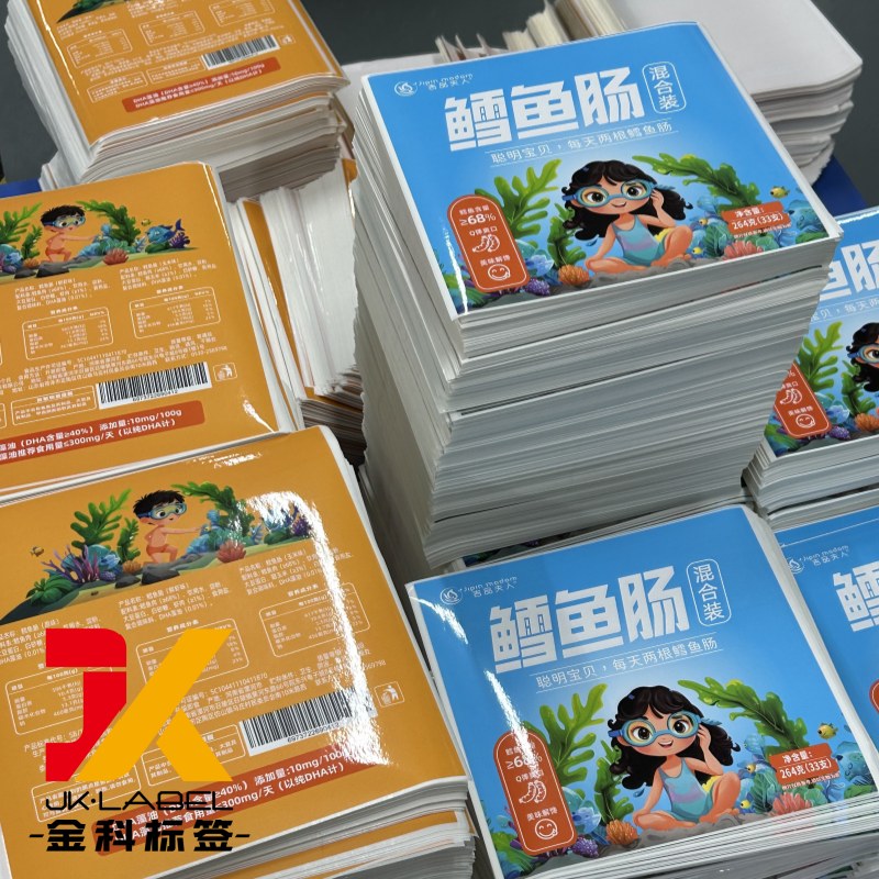 Sheet-Fed Snack Food Labels are widely used for frozen snacks, ready-to-eat foods, and retail food products that require clear presentation, stable adhesion, and high-quality printing. Based on the label shown, this product is designed for flat packaging such as frozen fish snacks, seafood-based products, and children-oriented food packaging. Our sheet snack labels are printed on carefully selected materials that provide good stiffness, smooth surfaces, and reliable ink adhesion. They are suitable for colorful designs, cartoon illustrations, nutritional information panels, and bilingual or multilingual text, which are commonly required in Southeast Asian food markets. These labels are supplied in sheet form, making them convenient for manual or semi-automatic labeling processes. With consistent cutting accuracy and clean edges, they help improve packaging efficiency while maintaining a neat appearance on finished products.